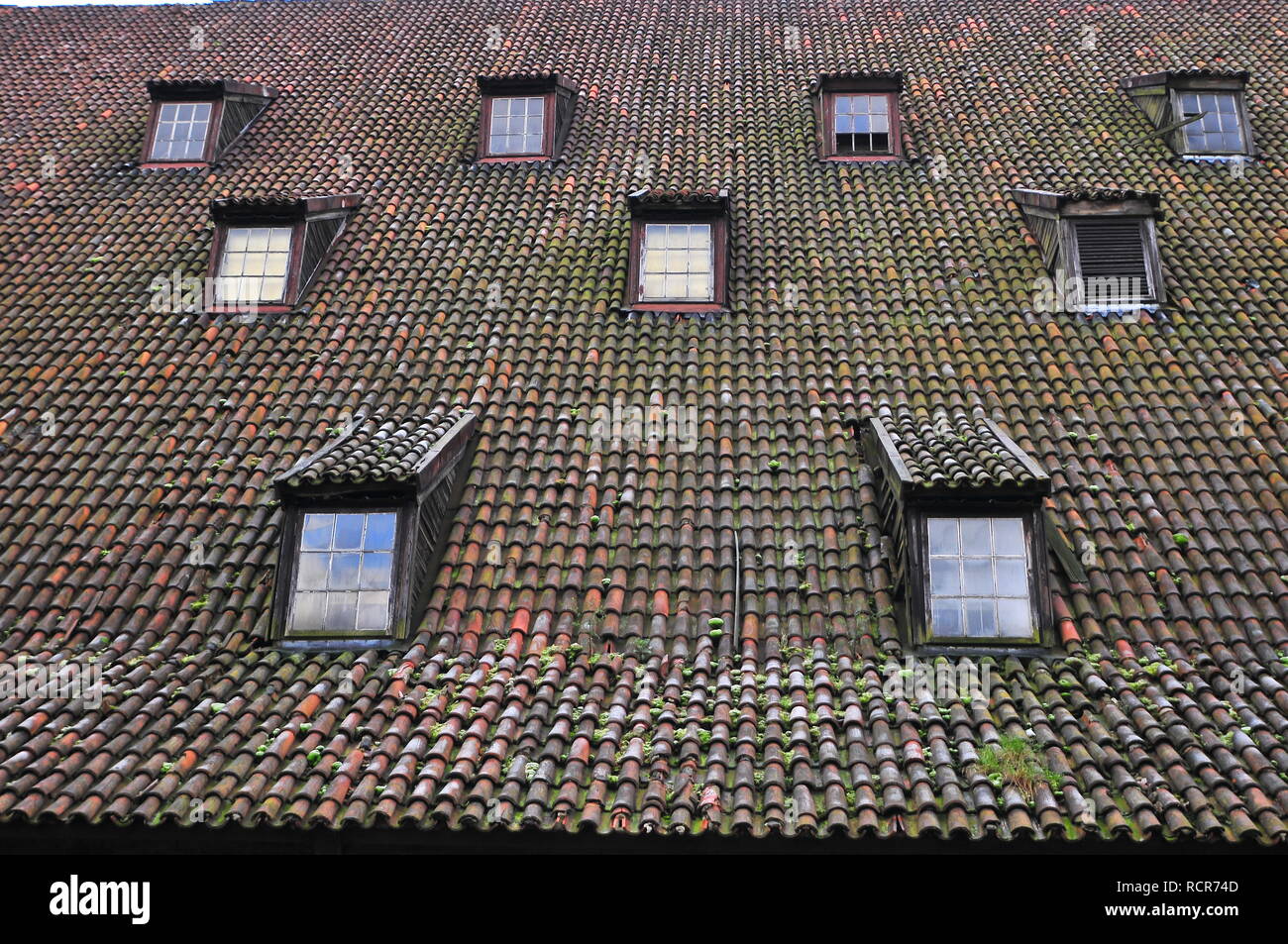Techo De Tejas De Barro Y Ventanas En Un Edificio Muy Antiguo Fotografia De Stock Alamy